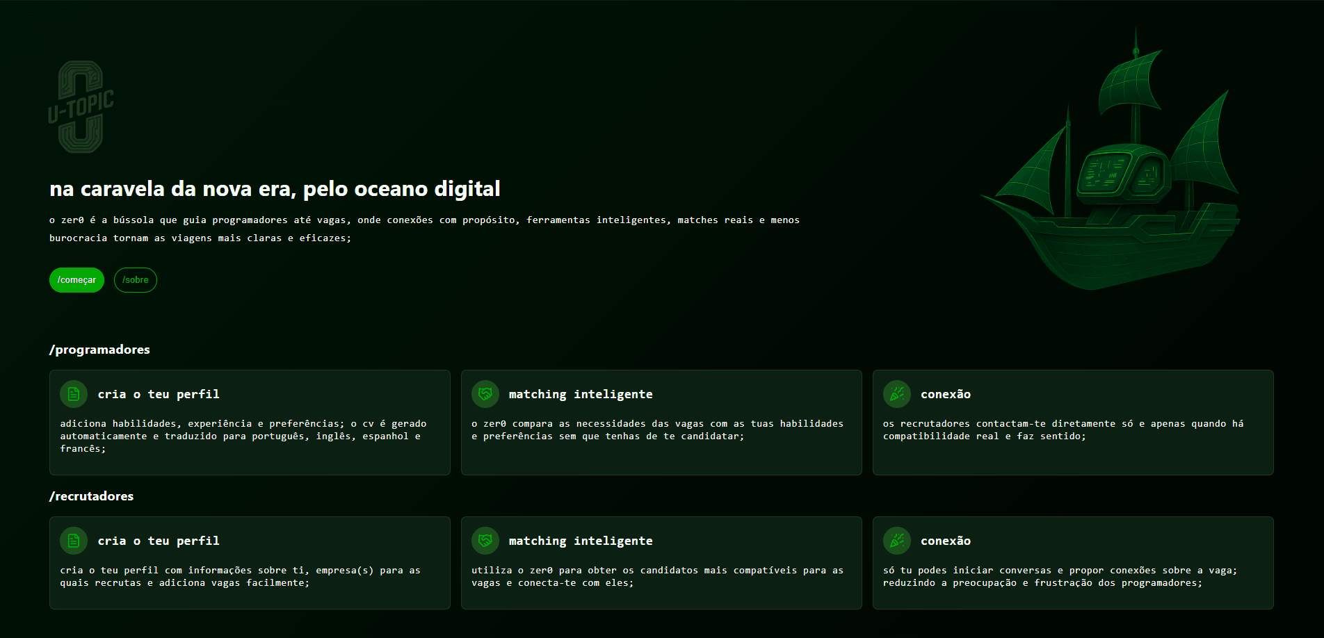 A plataforma parceira que utilizamos o zer0 (U-Topic-0) funciona com base em matching inteligente.