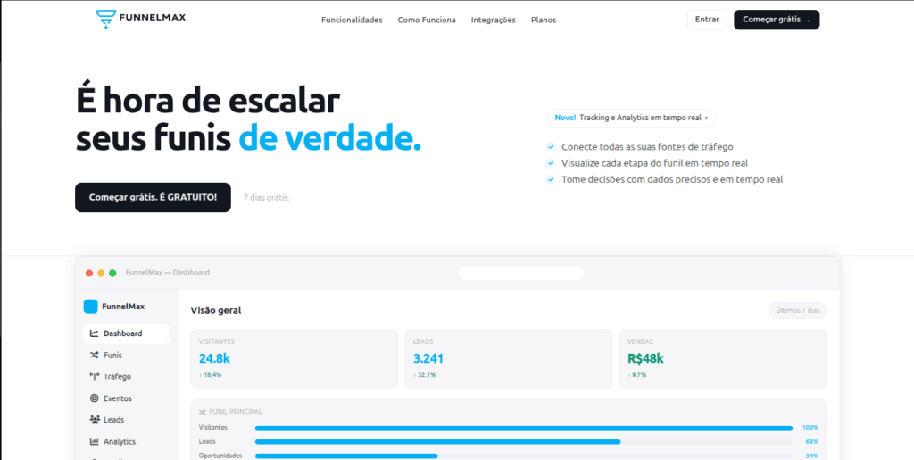 O FunnelMax é um projeto que nasce para resolver um problema concreto do mercado: a desconexão entre tráfego, funil, eventos e conversão.