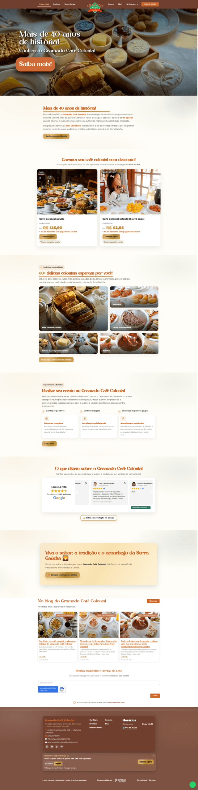 Com a nova plataforma, o Gramado Café Colonial consolidou sua presença digital como uma das principais experiências gastronômicas da Serra Gaúcha.